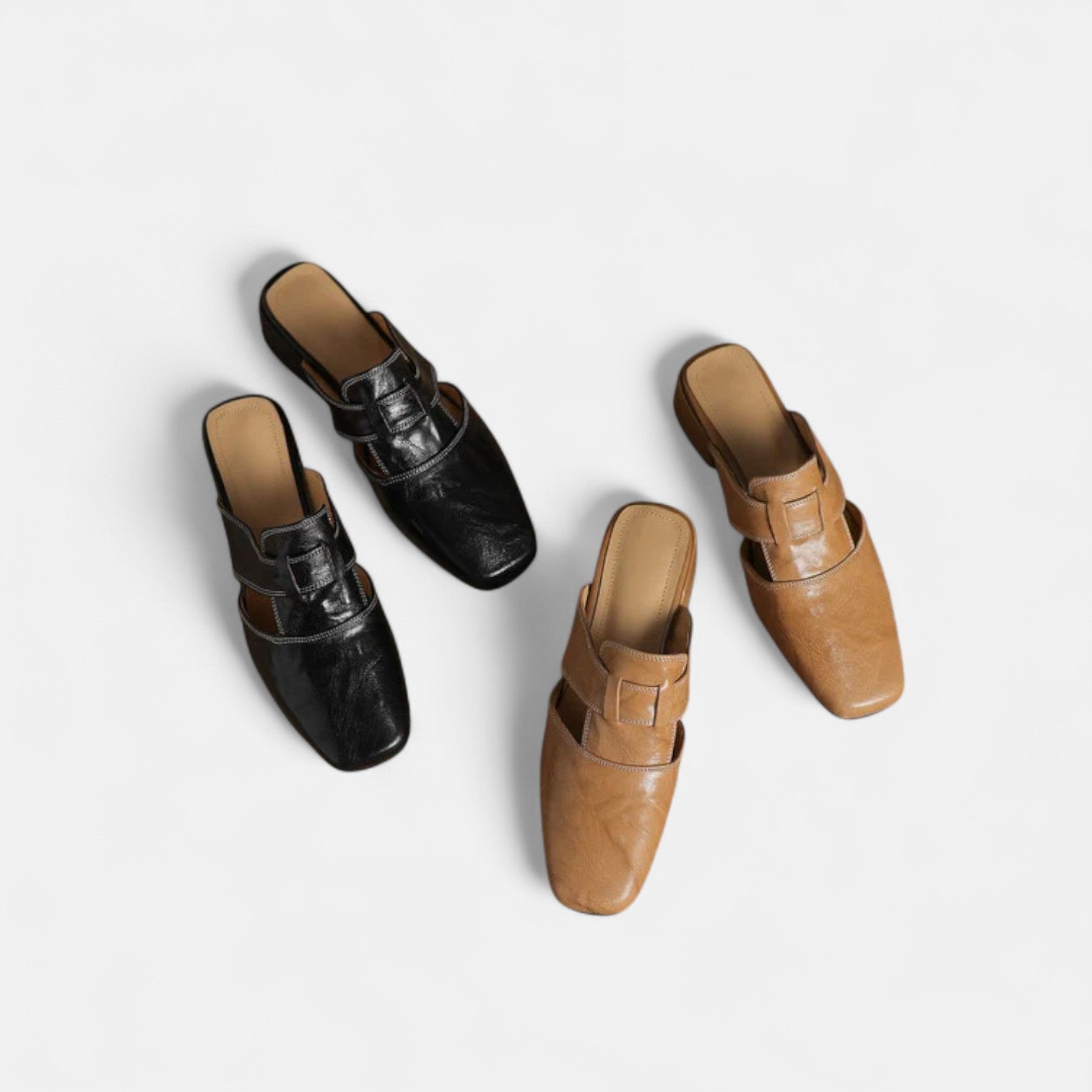 Chic Genuine Leather Mules with Elegant Cut-Out Design and Comfortable Mid Block Heel